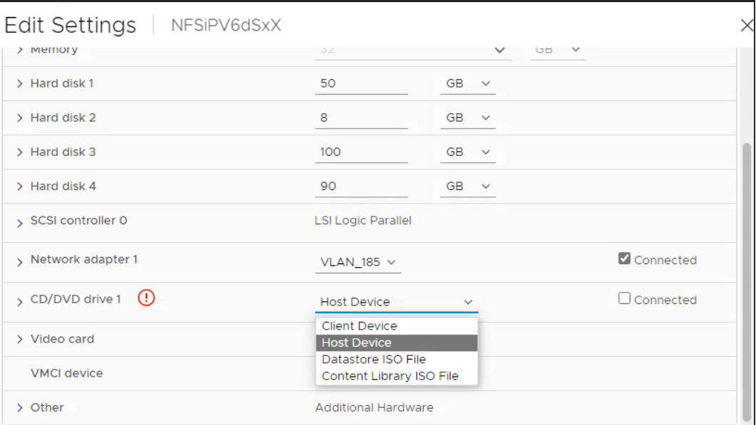 Dans la fenêtre de modification des paramètres, sous le champ lecteur de CD/DVD, sélectionnez le fichier ISO de la bibliothèque de contenu.