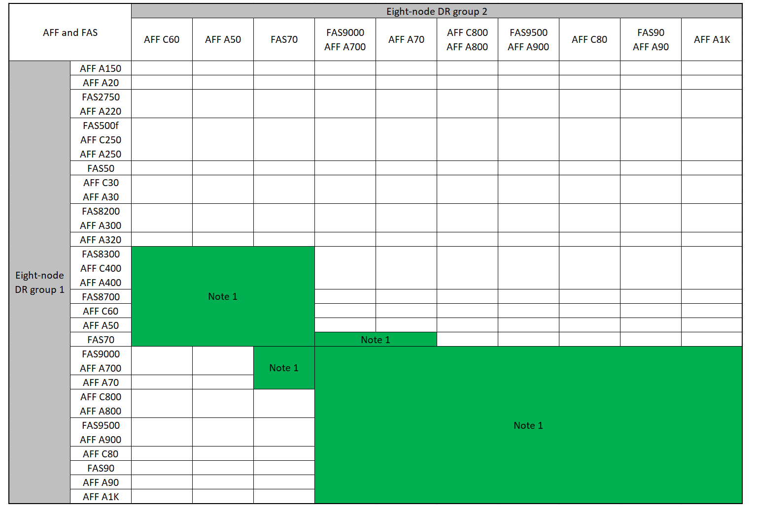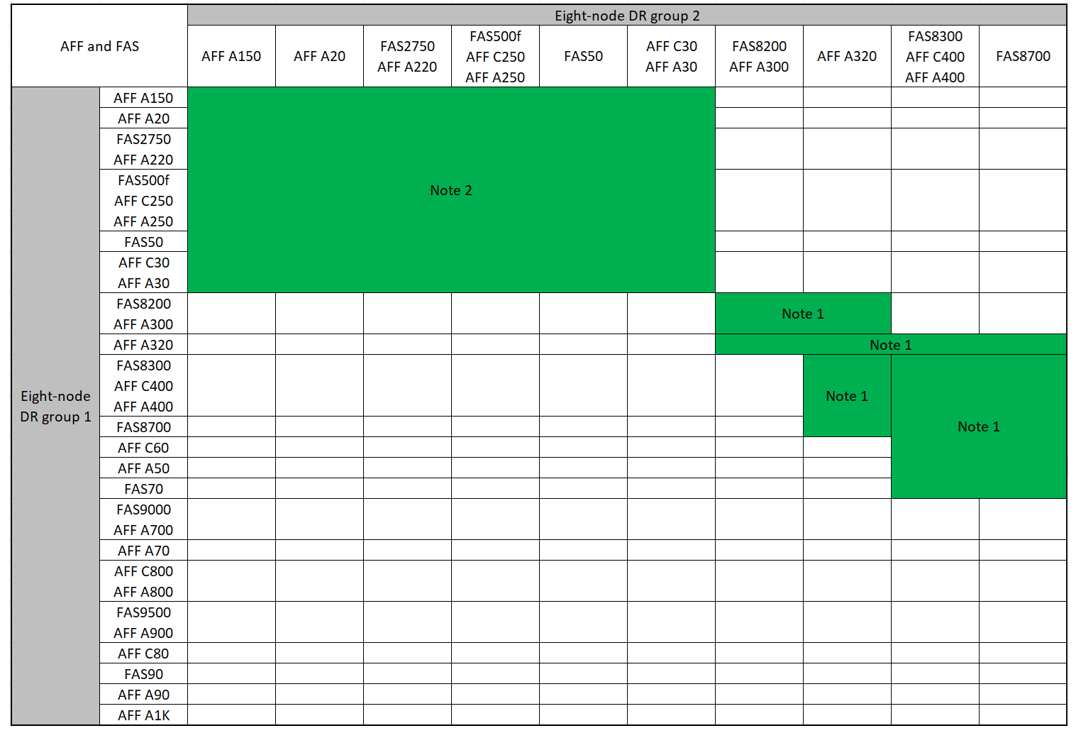 Nota 1: Per queste combinazioni è necessario ONTAP 9.9.1 o versioni successive (o la versione minima di ONTAP supportata sulla piattaforma).