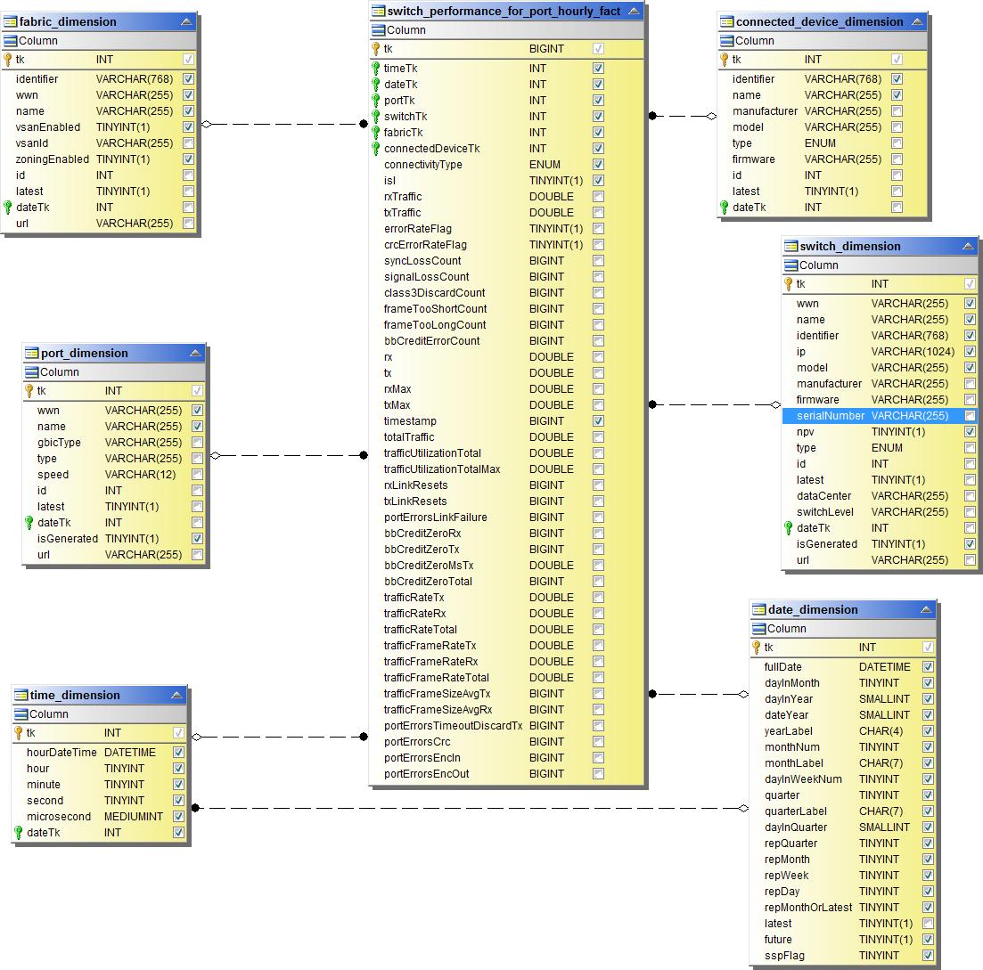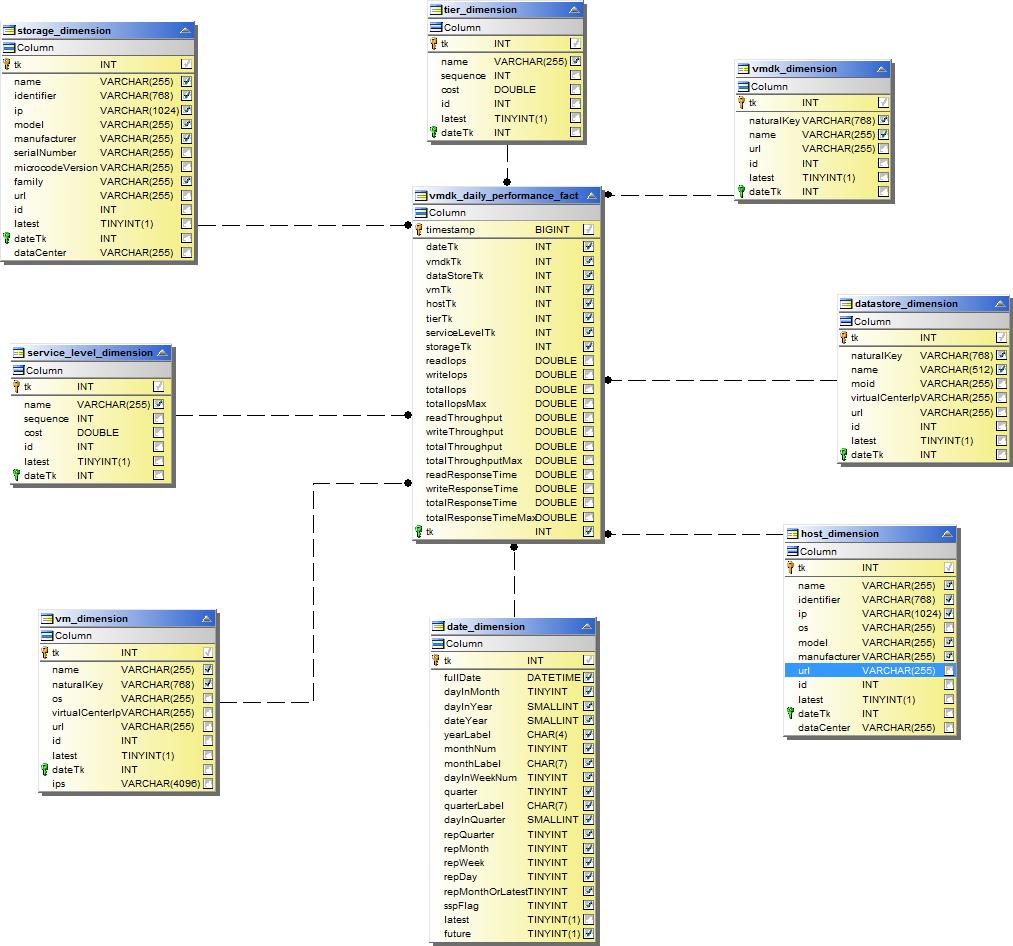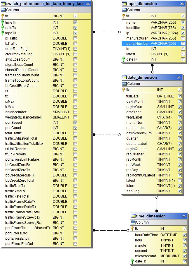 このドキュメントでは、レポート データベースのスキーマ ダイアグラムを示します。