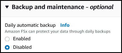 Trident 24.02より前のバージョンでは、自動バックアップが有効になっているAmazon FSxファイルシステム上に作成されたボリュームは、Tridentで削除できませんでした。Trident 24.02以降でこの問題を回避するには、AWS FSx for ONTAPのバックエンド構成ファイルで、