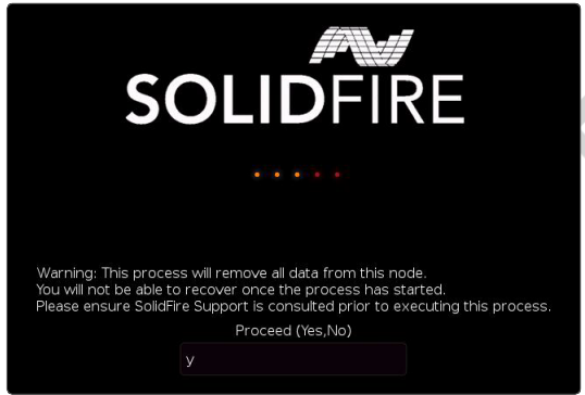 No prompt inicial, você é notificado de que o processo removerá todos os dados do nó e que os dados não serão recuperáveis após o início do processo. Digite Sim para começar.