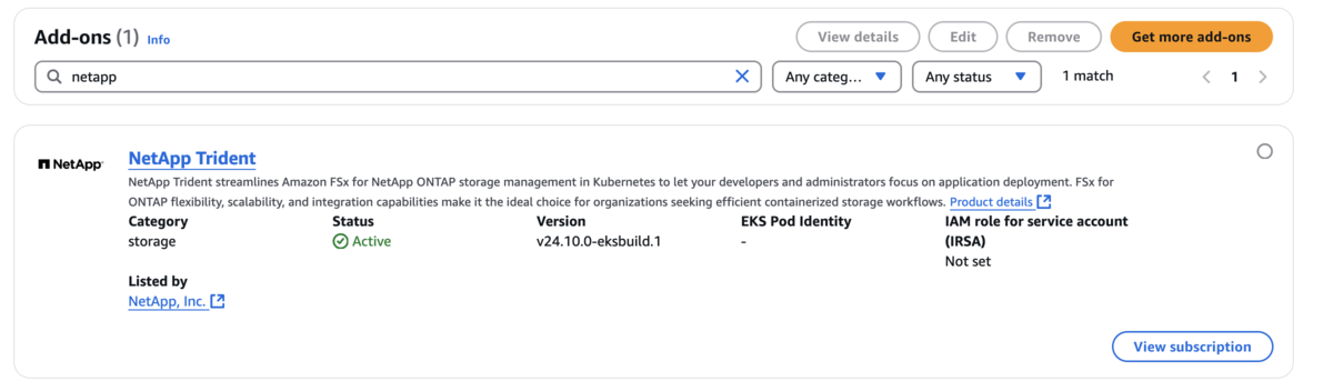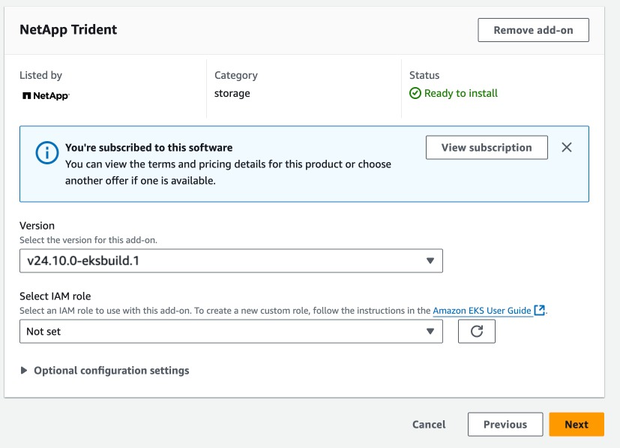 Configure o complemento do Trident EKS em um cluster EKS