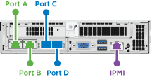 Here is the back of a two rack unit (2U), four-node chassis with four storage nodes: